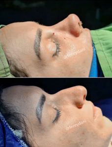 تصویری از قبل و بعد جراحی بینی در بینی با پوست نازک را مشاهده می کنید :